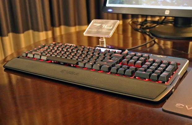 Yang pertama adalah, EVGA Z10 Mechanical Gaming Keyboard. Z10 menggunakan switch Cherry MX Red (linear, non-clicky, ringan), rangka dari campuran metal, dan detachable kabel. Tombol dilengkapi backlit yang warna-warnanya bisa dikonfigurasi lewat software bawaan atau sebuah scroll switch pada keyboardnya.
