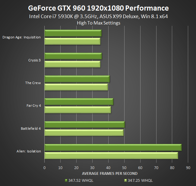 Berikut adalah grafis performance GeForce Game Ready Evolve Drivers 347.52 WHQL pada berbagai resolusi :