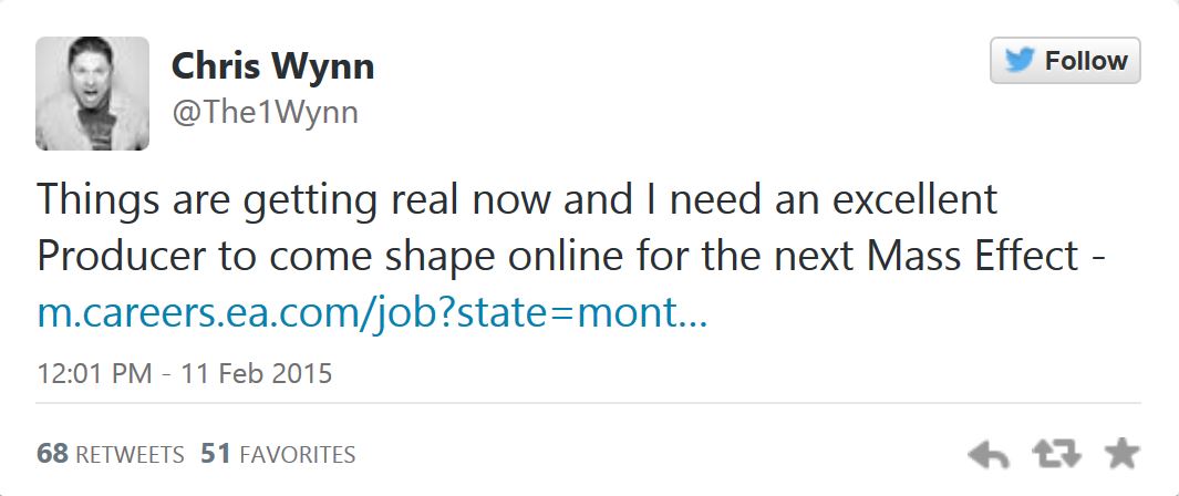 Iklan lowongan kerja Bioware Montreal untuk mencari produser online tersebut menyebutkan bahwa calon yang berhasil akan menciptakan dan memperjuangkan visi multi-player, pengalaman yang terhubung, dan fitur online game.