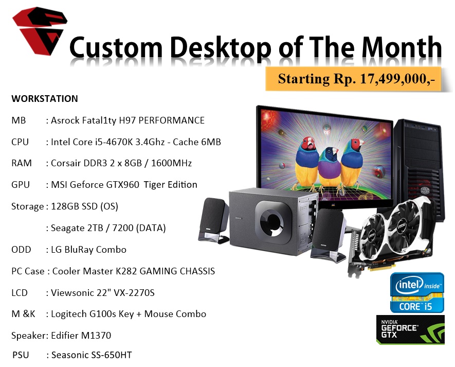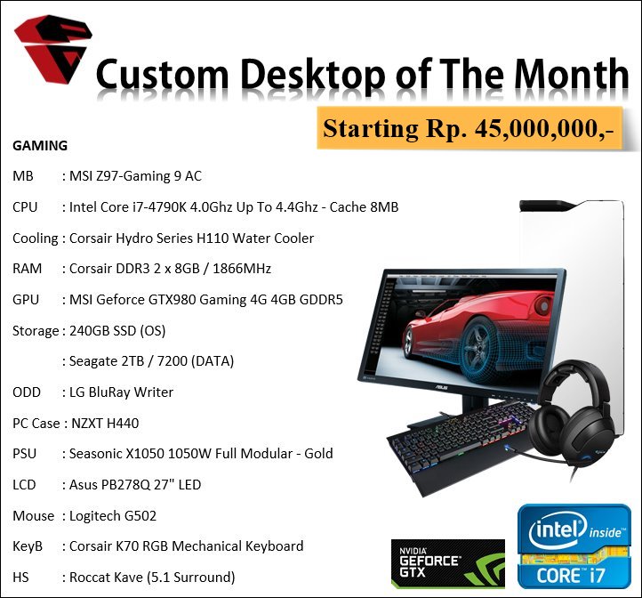 Nah pemmzholics, sebagai pertimbangan rate dollar yang semakin menggila, desktop PC custom sepertinya kembali jadi alternatif. Seperti kita tahu harga sebuah desktop PC Custom selalu lebih terjangkau dibanding notebook dengan spesifikasi yang mirip.