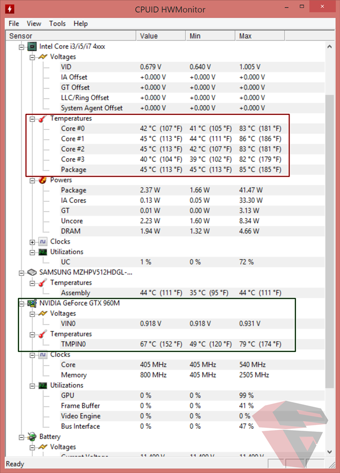 Untuk 16GB RAM yang ada didalamnya, 8GB-nya tertanam pada motherboard, dan 8GB lainnya terpasang pada satu-satunya soket DIMM. Sedangkan untuk storage pada ASUS ROG G501JW-DS71 ini menggunakan koneksi PCI X4 yang secara teori bisa memberikan throughput bandwith lebih lebar dari mSATA slot pada notebook lain yang umumnya menggunakan koneksi PCI X1. Sayangnya, selain slot m2.SATA yang sudah terpasang SSD 512GB, tak ada lagi slot storage lain untuk kita menambah kapasitas penyimpanan.