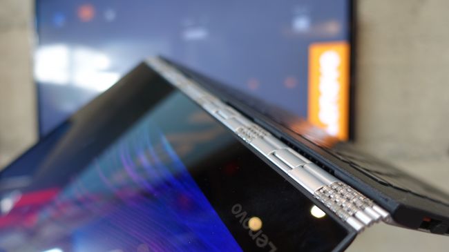 Lenovo kembali mengusung engsel yang dapat diputar 360 derajat. Engsel yang baru ini hadir dengan struktur ventilasi yang unik. Menurut Lenovo, engsel ini menggunakan desain watchband yang memberikan rotasi lebih baik. Bagi Anda yang sering mengganti mode laptop dan tablet, Windows 10 juga mempermudahnya dengan mode Continuum yang menyesuaikan UI desktop bergantung pada mode penggunaan.