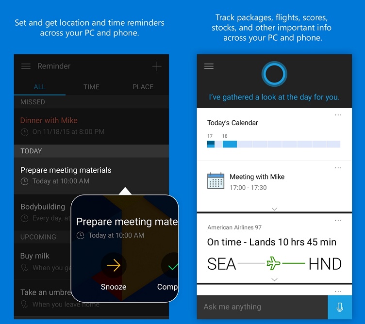 Setelah beberapa bulan berada pada tahap beta testing, kini asisten virtual Microsoft secara resmi memulai debutnya di Android dan iPhone. Mulai hari ini, Anda dapat menelusuri aplikasi Cortana di app store masing-masing platform tersebut atau melalui aplikasi Windows 10. Tak banyak perbedaan dari versi beta, pada level basic, Anda dapat memasang reminder dan notification serta mengajukan pertanyaan kepada sang asisten secara manual. Namun demikian, pengaturan fitur Cortana akan berbeda-beda pada setiap platform.
