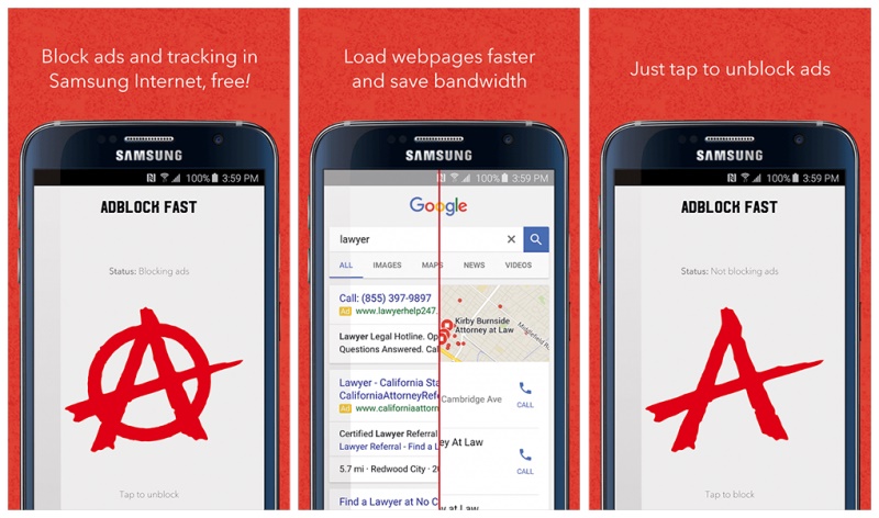 Anehnya, Ad blocking extensions pertama untuk Samsung Internet diumumkan bersamaan dengan update fitur AdBlock Fast yang tersedia di Google Play Store. AdBlock Fast selama ini telah digunakan di perangkat iOS dan Chrome serta Opera versi desktop. Extension ini cukup populer karena gratis dan open source. Developernya juga mengklaim bahwa AdBlock Fast dapat mempercepat speed browsing web hingga rata-rata 51 persen.