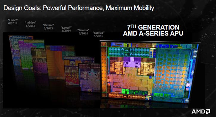 Selain Radeon RX 480, AMD juga mengumumkan APU generasi Ke-7 mereka yang diberi nama Bristol Ridge dan Stoney Ridge. APU generasi terbaru ini juga menjanjikan performa yang lebih baik diseluruh aspek dibandingkan dengan generasi sebelum nya. APU generasi ini juga menjanjikan konsumsi daya yang lebih rendah pada notebook. Sehingga para konsumen dapat bermain atau bekerja dengan waktu yang lebih lama. Bristol Ridge APU mencakup semua segment mainstream dengan AMD FX, A12, dan A10 yang memiliki daya 35 dan 15 watt. Sedangkan Stoney Ridge APU mencakup segment ultra mobile dengan A9, A6, dan E2 yang hanya mengkonsumsi 15 watt.