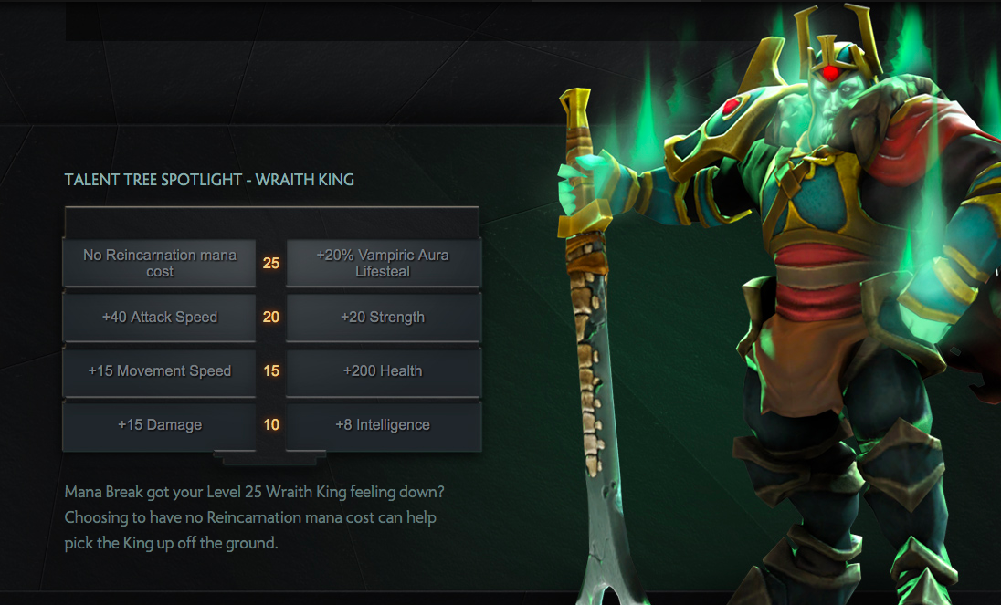 Namun hal yang paling signifikan adalah digantikan nya stats pada hero dengan talent. Talent adalah suatu point dimana para player dapat memilih arah dari build hero mereka masing masing. Talent dapat dipilih setiap level 10,15,20, dan 25 dan juga berbeda dalam tiap hero.