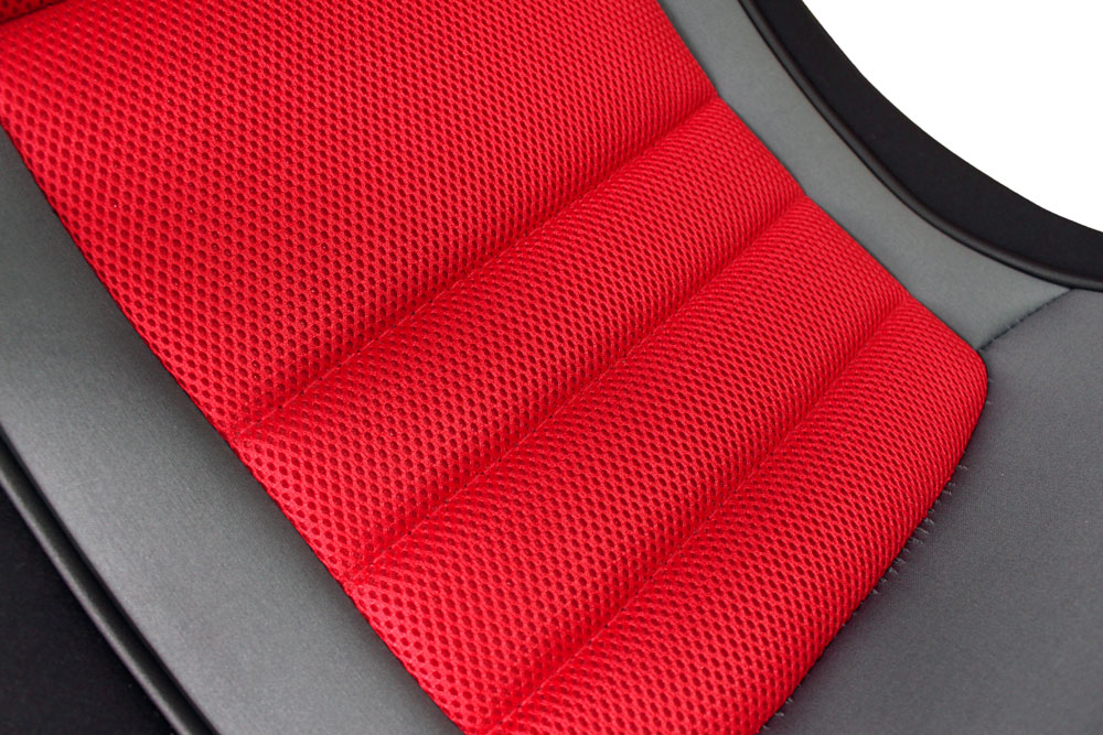 Pemilihan kombinasi warna Hitam, merah dan abu-abu, berhasil memberi kesan dinamis pada produk ini, juga sedikit sporty. Ketinggian seat sepertinya sengaja dibuat tak sampai setinggi lutut orang dewasa. Posisi “landai” ini, menurut kita, membuat paha sejajar dengan lutut yang merupakan posisi paling rileks untuk duduk. Merubah posisi menjadi berpangku kaki juga tak kalah rileks. Tapi, untuk digunakan sebagai bangku kerja, ketinggian seat seperti ini sangatlah tidak nyaman. Tapi karena Spirit 2.1 ini memang tidak diperuntukan buat kursi kerja, seharusnya hal tersebut jadi kekurangan yang minor. Sedikit tips, bisa menambahkan bantal jika memang tetap ingin memanfaatkan kursi ini sebagai kursi untuk berkerja. 😀