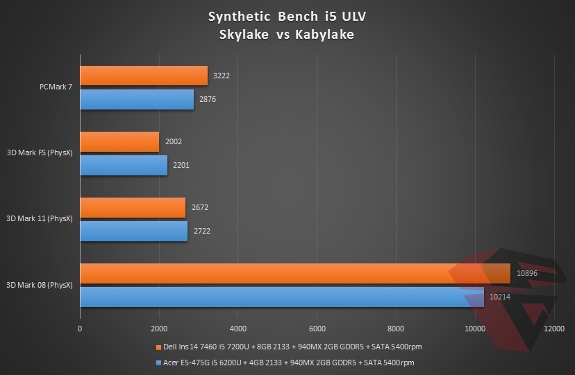 Seperti yang pernah pemmzchannel ulas dalam artikel sebelumnya tentang benefit kabylake, hal yang sama juga terjadi pada seri ULV-nya. Yap, jika dibandingkan dengan Intel core i5 6200U yang di pakai Acer Aspire E5 475G, CPU i5 7200U pada Inspiron 14 7460 lebih kencang sekitar 10% di aplikasi single core. Thanks untuk base clock dan turbo clock yang lebih tinggi. Tambah lagi, turbo clock pada mode multi core Intel core i5 Kabylake ULV, juga lebih tinggi. Hal ini seharusnya, bisa sangat mempengaruhi performa gamingnya. Seperti kita ketahui, seringkali terjadi bottleneck jika sebuah chip GPU terlalu superior di banding chip CPU-nya.