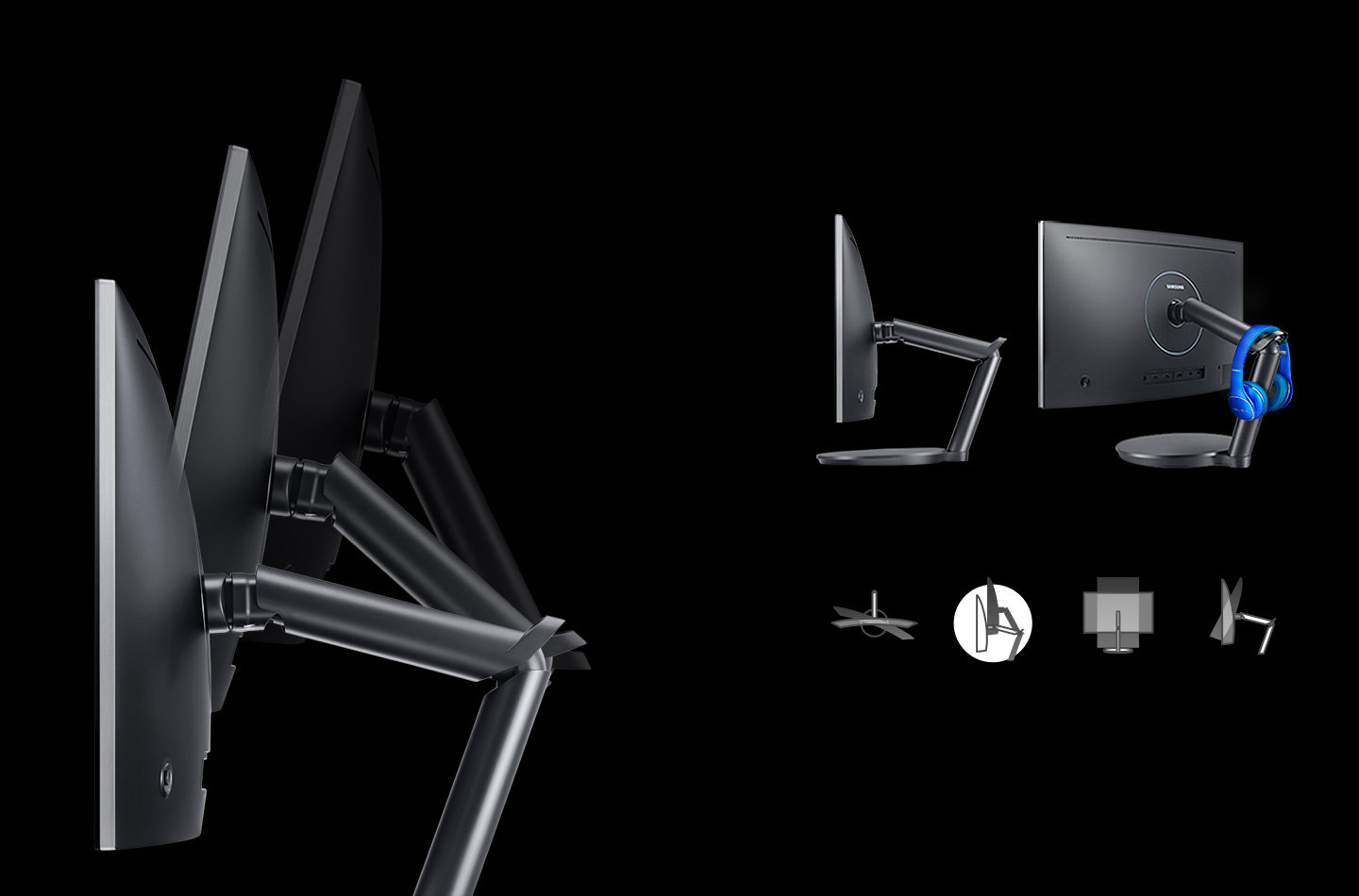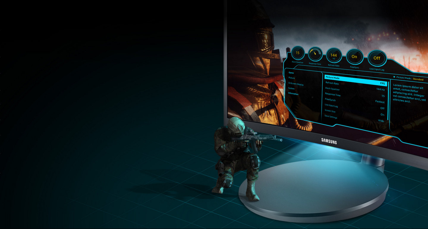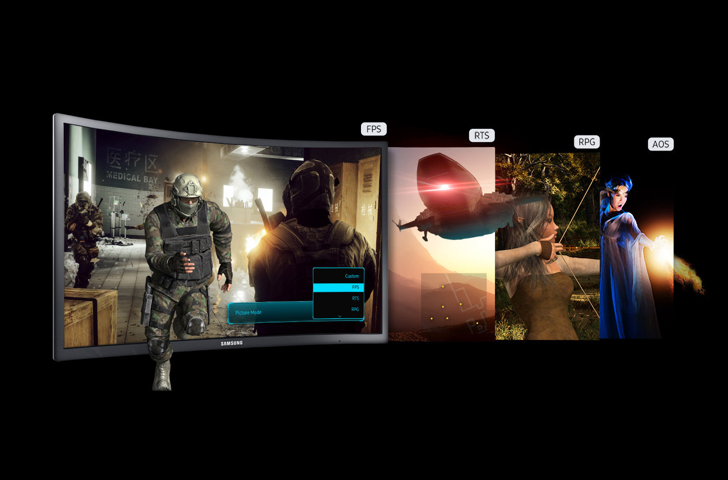 Sayang sekali keduanya bukan tipe layar lengkung 4K, melainkan hadir dengan resolusi FullHD (1920×1080 piksel). Samsung memutuskan untuk membenamkan rasio kontras sebesar 3000:1. Sebuah UX didesain khusus oleh Samsung, yang didedikasikan untuk para gamers. UX tersebut hadir dengan dashboard yang bisa diset dengan mudah. Sejumlah hotkeys juga dibenamkan di bagian depan dan belakang monitor, yang bisa digunakan untuk mengatur sejumlah hal. Kalibrasi pabrikan sudah dipersiapkan oleh Samsung, supaya monitor tersebut bisa beradaptasi dengan berbagai varian genre game.