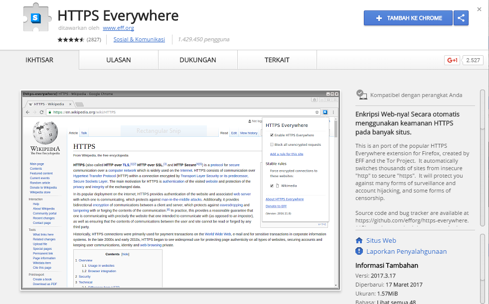 Keamanan sambungan merupakan satu isu yang penting bagi kebanyakan pengguna internet. Bila dipasang di Chrome, ekstensi yang satu ini akan mencoba untuk menggunakan fitur keamanan HTTPS pada situs tertentu yang belum memiliki koneksi aman.