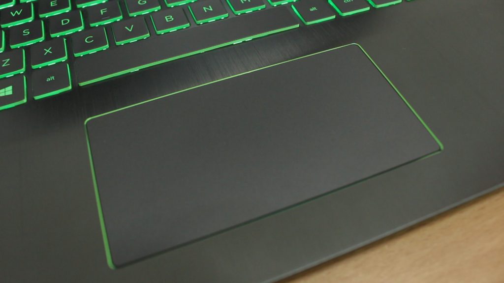 Masih setia dengan ciri khas HP dengan desain persegi panjang, dimana desain seperti ini sangat baik untuk anda yang seringkali melakukan draging membelah layar monitor. HP menambahkan ornamen chrome di sekelilingnya, yang membuat ia tampak indah saat memantulkan sinar dari backlit keyboard. Tombol klik kiri dan kanan dibuat menyatu dengan permukaan touchpad. Tak ada noise yang terdengar menggangu, responnya juga sangat baik. Terkait fitur, nampaknya touchpad dengan hardware buatan eLAN Tech ini memang belum mendukung Windows Precission Driver. Fitur dari microsoft di Windows 10, yang memungkinkan operasional multitouch gesture tingkat lanjut.