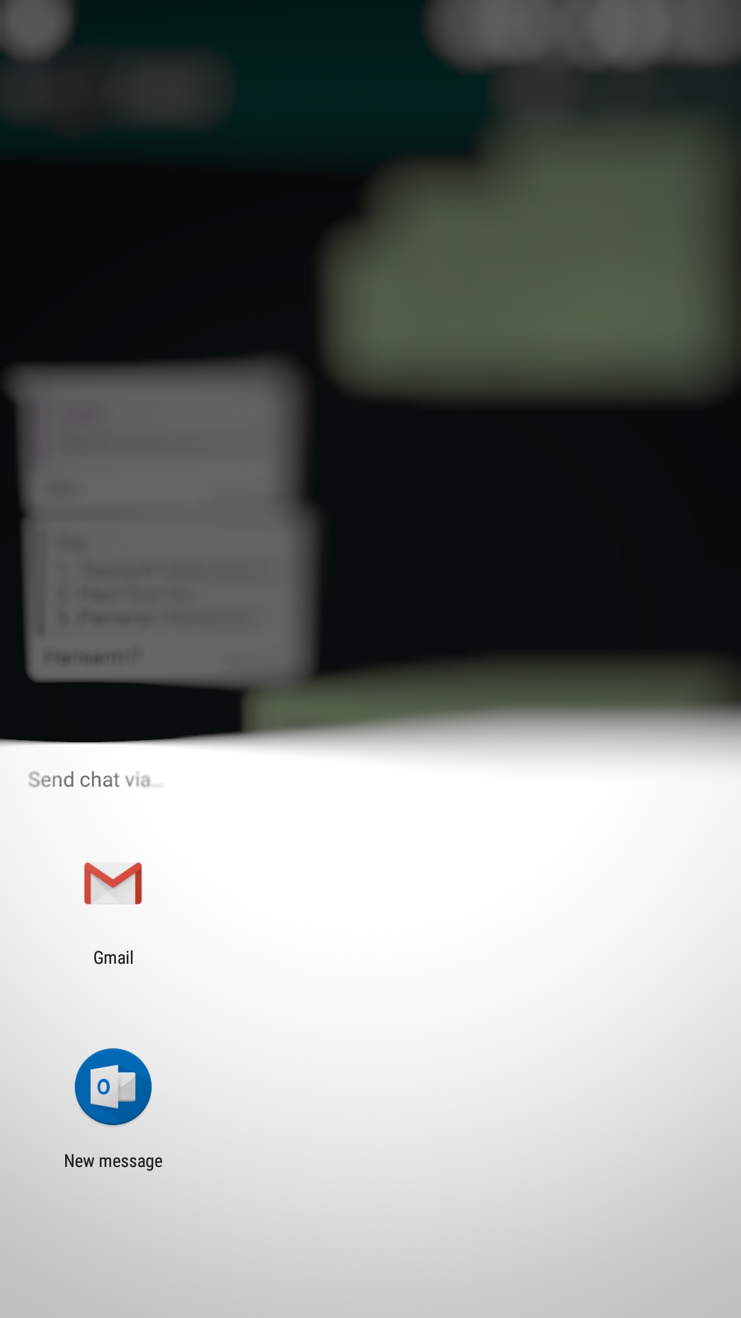 Percakapan antara kamu dan temanmu bisa diekspor ke email. Ini biasanya dilakukan ketika kamu ingin menyimpannya sebagai kenang-kenangan. Caranya mudah. Bukalah sebuah percakapan dan kemudian tap pada ikon tiga titik vertikal di bagian kanan atas, kemudian pilih opsi More > Email chat. Yang kemudian muncul kira-kira akan seperti gambar di bawah ini.