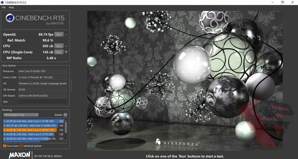 Untuk GPU, pemmzchannel sendiri cukup kagum dengan performanya. Geforce MX150 2GB GDDR5 64-bit ini lebih kencang hingga 40% lebih dibanding Geforce 940MX. Atau jika melihat ulang database pemmzchannel 2 tahun lalu, kemampuannya hampir setara dengan Geforce GTX 950M.