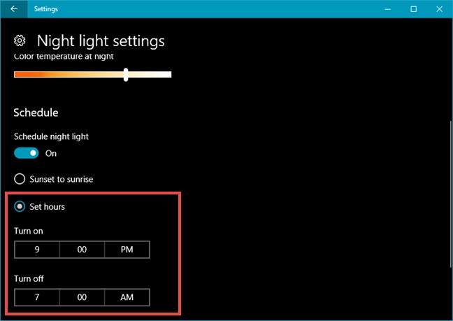 Bila kamu menghidupkan fitur tersebut di siang hari, Night Light tidak akan memberi efek besar. Nah, secara otomatis opsi Night Light akan tetap mati/tidak aktif sampai matahari tenggelam di lokasi tempat tinggalmu. Opsi macam itu membantu Windows 10 menghidupkan Night Light secara otomatis ketika matahari mulai terbenam, dan pada gilirannya fitur itu akan mati setelah matahari terbit dari Timur.