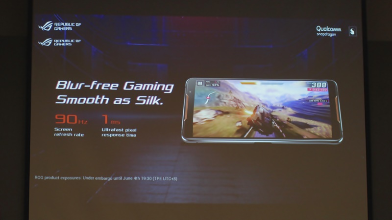 Memang belum ada SKU dengan nama yang aneh-aneh dari line-up ROG Phone, (Spatha, Scar, Hero, dll). Tapi, smartphone ini langsung membuat kami cukup impresif. Ketika kami mengangkat perangkat ini, kami langsung disuguhi dengan layar AMOLED dari Samsung yang memiliki refresh rate setinggi 90 Hz dan response time 1 ms. Memang, refresh rate yang dimiki belum setinggi Razer Phone (120Hz), tapi sampai saat ini, kami belum menemukan game yang berjalan diatas 60. Jadi, bagian ini tidak perlu terlalu dipermasalahkan. Spesifikasi yang diusung oleh ASUS ROG Smartphone ini adalah Snapdragon 845, yang di pre-binned sehingga mampu berjalan hingga 2,96 GHz, 0,03 lagi menuju 3 GHz dan RAM sebesar 8GB LPDDR4.