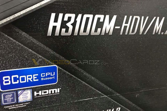 Kali ini kabar terbarunya, baru saja Videocardz telah membagikan sebuah foto yang didapatnya dari pihak internal ASRock. Pada foto tersebut terlihat sebuah sticker yang bertuliskan “8 core CPU support” pada sebuah kotak packaging dari motherboard ASRock dengan chipset H310.