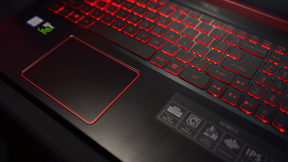 Tombol keyboard hanya memiliki backlight berwarna merah saja. Lampu pada tombol bisa diaktifkan atau dimatikan cukup dengan menekan kombinasi tombol Fn+F9 tanpa bantuan software apapun. Tombol-tombol cukup nyaman dan terasa empuk saat diketik. Keyboard ini juga memiliki numpad. Agar dimensi tidak terlalu lebar, area keyboard dibuat cukup rapat meski tetap terdapat jarak pada tiap tombol. Perlu digaris bawahi bahwa di area numpad, ukuran tombolnya lebih kecil.