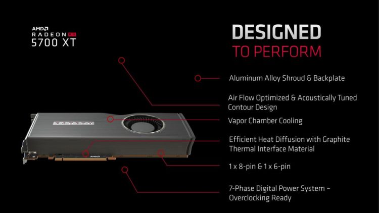 Salah satu dari lini produk tersebut yaitu generasi terbaru dari GPU Radeon yang pertama yaitu RADEON RX 5700 XT, GPU berbasis Navi yang dijanjikan AMD membawa spesifikasi 2560 stream processors, up to 1905 MHz Boost Clock, 8GB DDR6, 256 bit, 14 Gbps, dan 448 GB/s menjadikan kelas GPU ini diatas RTX 2070 untuk menjadi saingan berat seri Nvidia.