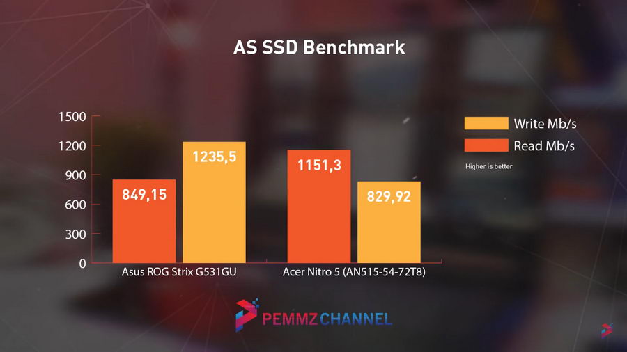 Tapi untuk performanya, secara umum kecepatan baca dan tulis SSD-nya tidak kencang-kencang amat buat sebuah laptop gaming, mesti terbilang sudah cukup untuk skenario gaming. Berikut skor yang didapat SSD sama HDD dari aplikasi benchmark CrystalDiskMark.