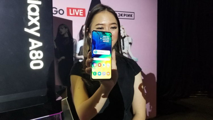 Samsung Galaxy A80 tersedia dalam pilihan warna phantom black, angel gold, ghost white, dan dijual dengan harga Rp9.499.000.