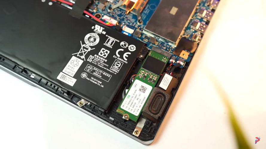 Untuk slot SSD cuma satu yang udah diisi kapasitas 256GB. Slot SSD-nya berjenis M.2 NVMe PCI Express x2 bukan x4 yaa. Tapi gpp lah, masih terbilang kencang kok. Yang agak aneh sih Acer nyediain ruang buat HDD 2,5 inci tapi gak ada socket satanya. Jadi kalo kalian mau nambahin HDD, terpaksa mesti beli socket satanya juga.