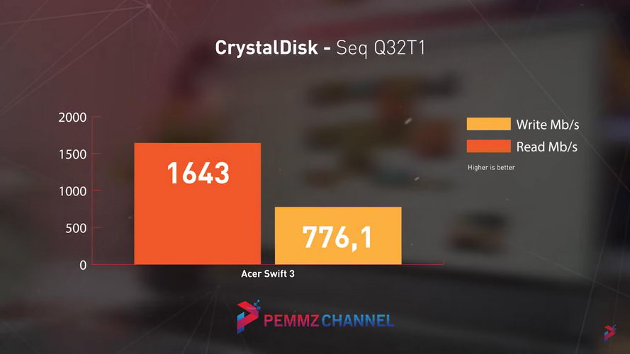 Buat laptop harga murah, ngasih storage SSD merupakan suatu nilai plus bagi kami. Meski kapasitasnya cuma 256GB, kalo kalian ngerasa kurang gede, opsi pake SSD atau HDD eksternal bisa jadi salah satu cara praktis. Kalo liat performanya lewat Crystal disk Mark, kecepatan baca dan tulisnya udah cukup baik dan juga gak jelek-jelek amat. Dibanding HDD yang performanya masih di bawah SSD. berikut hasilnya benchmarknya