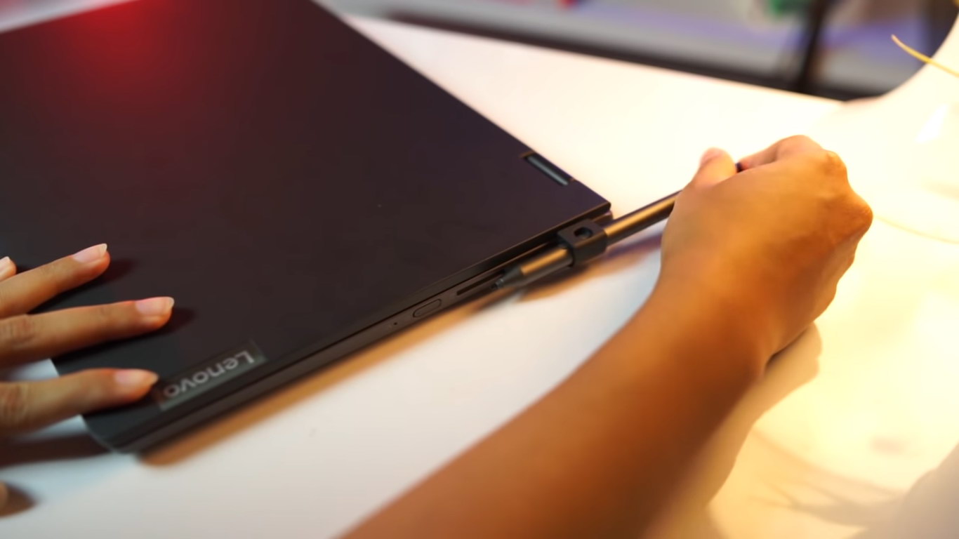Dalam paket penjualan, Lenovo udah nyertain stylus atau active pen. Gak ketinggalan sama satu baterai AAAA untuk stylusnya. Stylusnya punya dua tombol untuk fungsi klik di bodinya. Biar gak gampang ilang, Lenovo juga udah ngasih semacam dongle untuk tempat stylusnya. Dongle ini bisa dipasang di port USB.