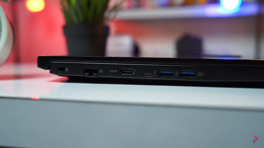 Di bagian port I/O, laptop ini punya port yang terbilang umum dikelas terjangkau. Di sisi kanan ada audio jack, USB 3.1 Gen 1 Type-A, lampu led notification untuk Power dan baterai, dan port DC-in. Yang kurang asik sih posisi port DC-in yang agak ditengah ini sedikit ngeganggu. Soalnya disebelahnya ada airhole buat ngebuang udara panas. Sedangkan di sisi kiri ada kensington lock, LAN, HDMI 2.0 yang bisa pasang ke monitor eksternal sampe 144Hz, USB 3.1 Type-C yang belum support thunderbolt, dan dua USB 3.1 Type A Gen 2 yang lebih kencang. Pada IO port ini sangat disayangkan kekurangannya yaitu pada absennya SDcard reader.