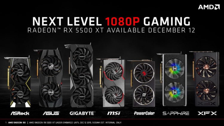 Varian kartu grafis AMD Radeon RX 5500 XT sudah tersedia melalui partner-partner board termasuk diantaranya ASRock, ASUS, Gigabyte, MSI, PowerColor, SAPPHIRE dan XFX, dimulai dari harga SEP US$169.