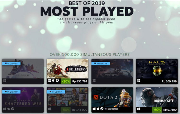 Seperti tahun-tahun sebelumnya, Steam merilis daftar game-game favorit di penghujung tahun. Yang paling menarik adalah kategori game terfavorit dan kategori game paling laris.