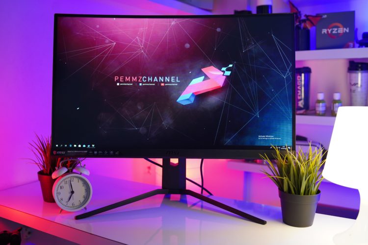 Desain monitor ini cukup kekinian bagi kami karena berhasil menggabungkan kesan gaming dan futuristik menjadi satu. Dibagian belakang terdapat motif jalur PCB dengan tekstur brushed alumunium, Mystic Light RGB Strip, sedangkan di bagian depan terdapat layar curved berukuran 27inch dengan desain frame yang bezel-less di sisi kiri, kanan, dan atasnya yang sayangnya bezel bagian bawahnya cukup tebal, selain itu terdapat stiker highlight fitur monitor ini di bagian kiri bawahnya.