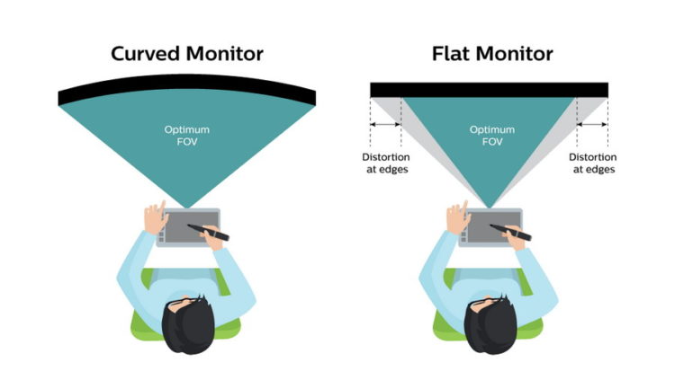 Tingkat kelengkungan layar merupakan faktor penting yang mempengaruhi kenyamanan menonton di sebuah PC. Monitor komputer dengan layar lengkung dapat membantu mengurangi kelelahan mata karena bentuk lengkung layar secara fisik sama dengan bentuk permukaan mata.