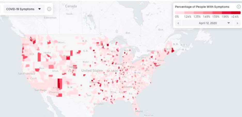 Peta penyebaran ini telah dikembangkan dengan jutaan respons dari banyak survei pengguna Facebook dan Google, sebagai bagian dari upaya penyebaran virus corona.