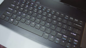 Beralih ke bagian keyboard, posisi keyboardnya menjorok kebawah dengan touchpad di sebelah kanan, diatas area keyboard terdapat area dengan seperti kaca hitam transparan yang didalamnya terdapat komponen dari laptop ini, sedangkan disebelah kiri terdapat airhole yang berfungsi untuk menyedot udara masuk kedalam laptop ini.