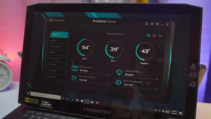 Kami menguji kemampuan overclocking laptop ini dengan menekan tombol Turbo, dikarenakan kami menekan tombol tersebut, maka sistem akan secara otomatis memberi power lebih pada CPU dan GPU yang terdapat pada laptop ini ke level Extreme yang ditunjukan oleh software PredatorSense dengan clockspeed CPU yang menyentuh 4.5Ghz dan core clock GPU yang menyentuh 2040Mhz. Sebagai catatan, Turbo Mode pada laptop ini hanya bisa diaktifkan apabila baterai berada diatas 40%.