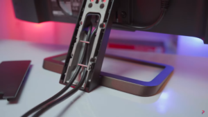 Jika kalian gak menggunakan vesa mount pada monitor ini, sudah disiapkan untuk covernya, jadi monitor ini tetap kelihatan cakep. Selain itu ada lagi point plus dari monitor ini yang kami temukan, yaitu adanya kabel management, jadi buat kalian yang mau setup PC nya rapi, monitor ini sangat membantu sekali.