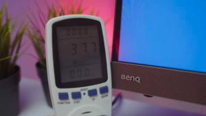Sesuai yang tertera pada spesifikasi, monitor ini memiliki power  sebesar 70 Watt, tapi saat kami ukur dengan watt meter daya yang digunakan sekitar 36 sampai 39 watt yang tentunya bisa lebih rendah lagi apabila dengan menyalakan mode Low Blue Light atau mode hemat daya. Selain itu monitor ini tidak menggunakan adapter lagi alias hanya menggunakan kabel power secara langsung, ini cukup menguntungkan yang mana penggunaan adapter akan sedikit memakan tempat.