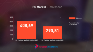 Kami menguji kemampuan laptop ini dengan dua skenario yang berbeda, yaitu dengan menggunakan spesifikasi bawaan laptop ini yang mana RAM berjumlah 4GB dengan storage HDD 5400rpm dan spesifikasi yang sudah diupgrade pada bagian RAM dan storage yang sebelumnya sudah kami jelaskan, dan untuk pengujiannya kami menggunakan dua game eSport dan software benchmark PCMark 8 untuk mensimulasikan penggunaan software Adobe After Effect dan Adobe Photoshop, selain itu kami juga mengukur boot time pada laptop ini dengan menggunakan stopwatch untuk masing-masing skenario.