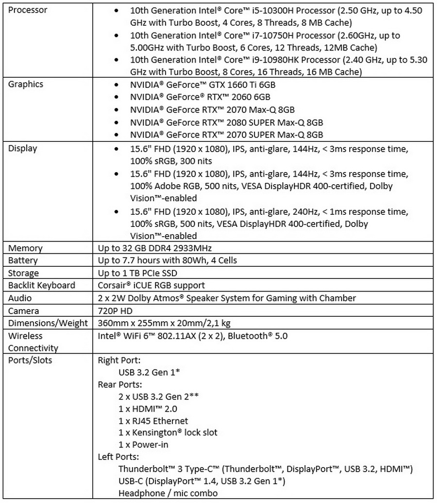 Gaming notebook ini dibuat presisi agar dapat menampilkan visual yang memukau dengan display color accurate 85,6% AAR berukuran 15-inci dengan In Plane Switching (IPS) Full HD (1920 x 1080) dengan refresh rate sampai dengan 144Hz dengan dukungan OverDrive dan pilihan NVIDIA G-SYNC. Untuk GPU-nya tersedia hingga NVIDIA GeForce RTX 2070 SUPER GPU dengan Max-Q Design.