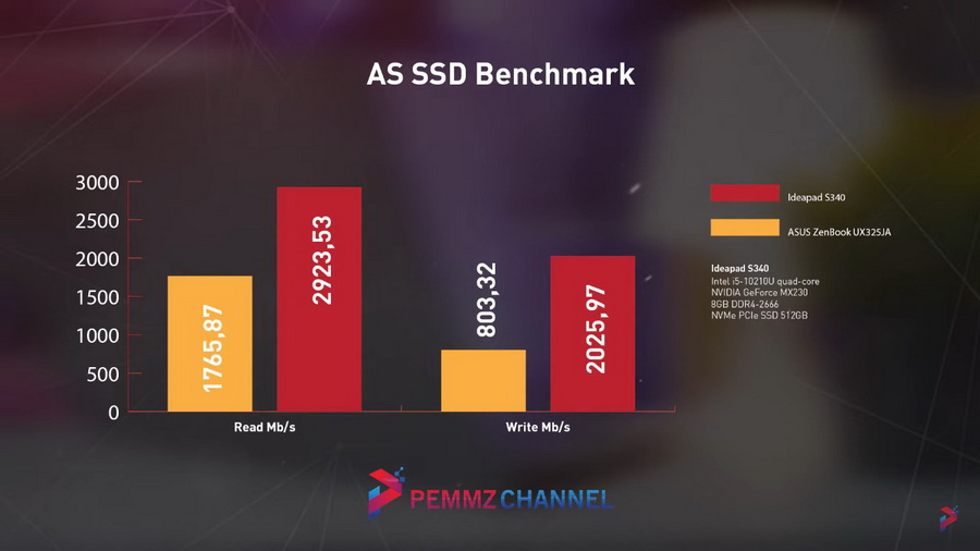 Untuk urusan storage, SKU ini cukup ngasih SSD ukuran 512 GB aja. Dan bisa ditebak, buat ngejar dimensi tipis dan enteng, SSD yang dipake berjenis M.2 NVMe bukan SSD 2.5 inch. Jenisnya pun sudah menggunakan jalur PCIe 3.0 x4. Cuma SSD-nya sendiri menampilkan performa yang menurut kami terbilang standar di kelasnya. Dari hasil pengujian, kecepatan baca-nya jauh diatas kecepatan tulis.