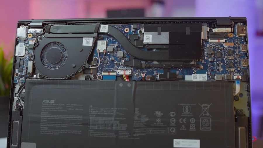 Mungkin karena dibuat tipis, jadi ASUS cuma bisa kasih konektor yang sedikit. Liat aja, sisi kanan cuma ada satu port USB 3.2 type-A sama micro sd card reader. C. Trus sisi kiri cuma ada port HDMI 2.0b dan dua port USB type-C. Udah itu aja. Cuma untungnya, dua port USB type-C ini udah support Thunderbolt 3.0 yang punya kecepatan transfer tinggi. Dan asiknya lagi port USB type-C ini bisa dipake buat nge-charge baterai atau untuk earphone. Jadi kalo kalian pengen colokin banyak periferal, jumlah port yang sedikit ini emang bisa sedikit jadi kendala. Tapi kalian bisa mengatasinya dengan USB Hub type C, jadi kecepatannya tetap tinggi.