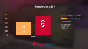 Dengan ditenagai oleh CPU Intel Pentium Silver N5030 berkonfigurasi 4-core 4-threads yang berjalan di 1.1Ghz dengan TurboBoost speed hingga 3.7Ghz, membuat kami tidak menaruh ekspektasi performa yang tinggi pada laptop inil. Apalagi laptop ini hanya mengandalkan sistem pendingin passive cooling. Dan benar saja, saat kami uji dengan menggunakan software Cinebench R15, CPU pada laptop ini hanya mampu mencatat skor multicore di 220CB dengan skor singlecorenya di 80CB. Selain itu kami juga sempat menguji dengan software pengujian x264 FHD Benchmark untuk menjalankan simulasi encoding, dan hasilnya pun sama dengan ekpektasi kami, CPUnya mampu menuntaskan simulasi encoding tersebut dalam waktu 5 menit 12 detik.
