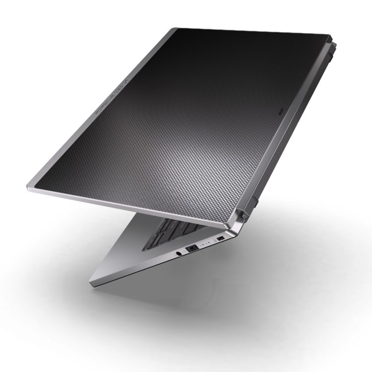 Laptop ini memiliki sentuhan khas yang terinspirasi dari desain elemen motorsport, mulai dari panel cover yang terbuat dari serat karbon diamond-cut, lapisan panel layar serta touchpad yang terbuat dari kaca. Bobot yang ringan dikombinasikan dengan desain elegan, menjadikannya sebagai perangkat komputasi yang tepat untuk mobilitas dan gaya hidup premium.