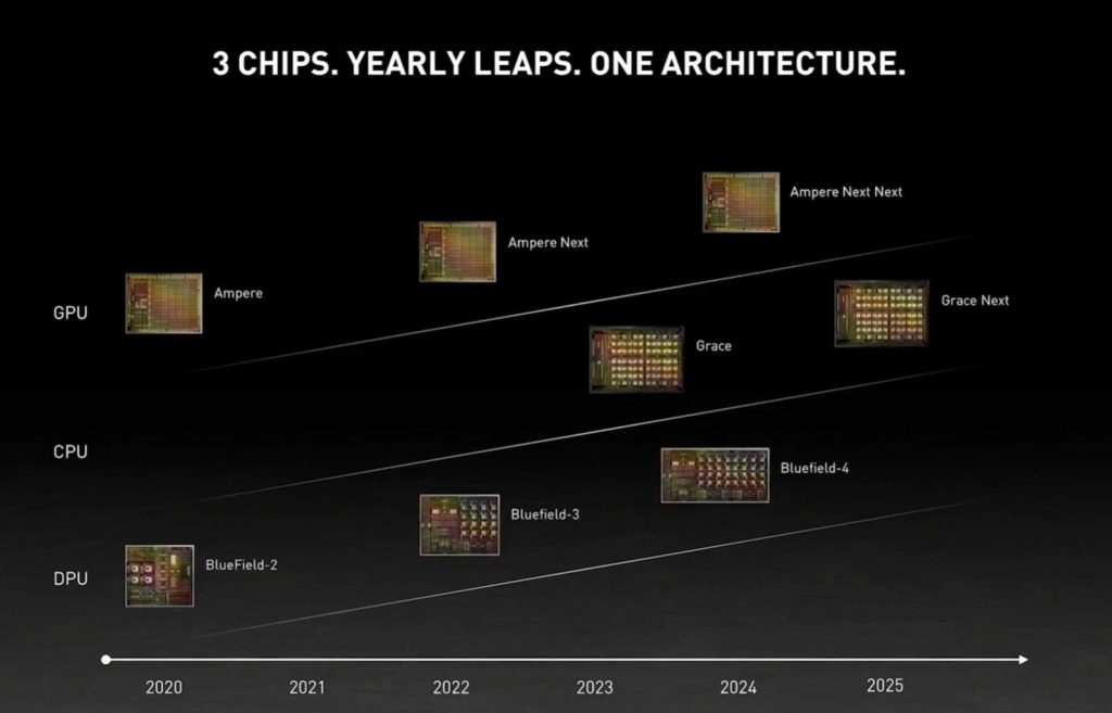 Dan dalam slide yang menunjukkan tumpukan chip pusat data Nvidia yang diperbarui, berikutnya- Arsitektur grafis gen “Ampere Next” terdaftar datang pada tahun 2022, dengan “Ampere Next Next” dijadwalkan untuk tahun 2024.
