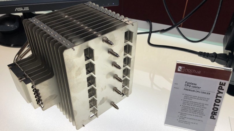 Noctua pertama kali mendemonstrasikan prototipe pendingin CPU tanpa kipas pada pertengahan 2019 di Computex. Menara heatsink menampilkan beberapa sirip alumunium, enam pipa panas, dan beratnya mencapai 1,5 kilogram. Dirancang untuk mendinginkan CPU hingga 120W TDP dalam wadah tanpa kipas, atau prosesor dengan TDP 18W dalam wadah yang dilengkapi dengan kipas yang tidak berisik.