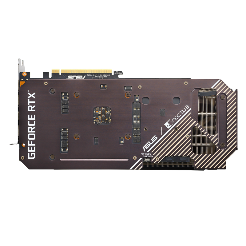 Pengguna juga akan dapat melihat nada warna multi-layer pada cover dan kipas yang memiliki warna cokelat yang berbeda. Dan di sisi kanan akan memiliki label ‘GeForce RTX’ bersama dengan ‘ASUS X Noctua’.