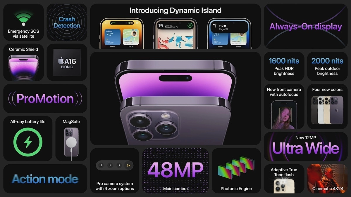 Berbeda dengan versi standar dan plus, iPhone 14 Pro dan Pro Max akan hadir dengan SoC terbaru apple yaitu A16 Bionic yang sudah menggunakan proses fabrikasi 4nm dengan power efisiensi lebih baik dan peningkatan dari sisi Image Signal Processing yang signifikan.