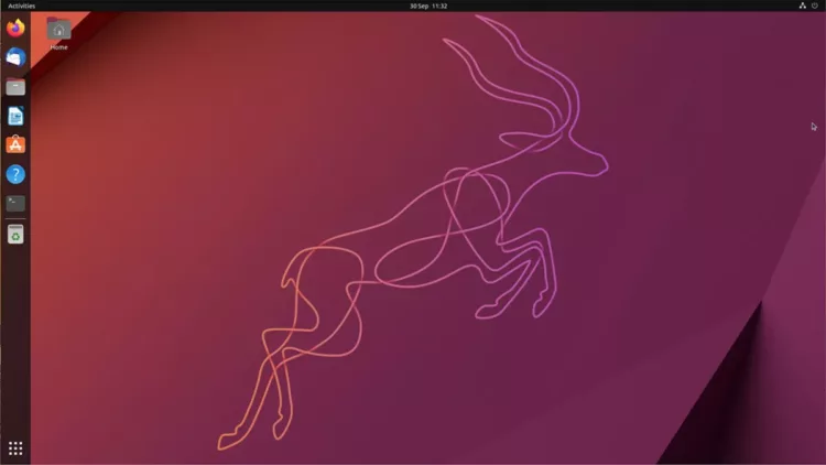 Terlihat juga terdapat gambar “Kinetic Kudu” atau Kijang yang indah di tampilan desktop bawaannya yang merupakan icon utama Ubuntu versi ini. Serta bisa dilihat dok Favorit banyak orang menggantung di sisi kiri layar desktopnya.