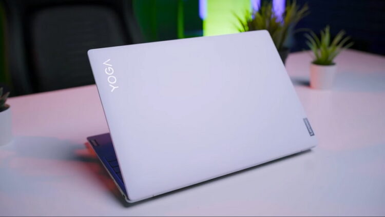 Tampilannya minimalis dengan warna putih susu di bagian covernya. Serta ada tulisan Lenovo dan Yoga yang penempatannya terpisah. Hinge-nya cukup fleksibel karena bisa dibuka hingga mentok sampai 180 derajat dengan satu tangan. Sementara untuk area keyboardnya memiliki warna silver.