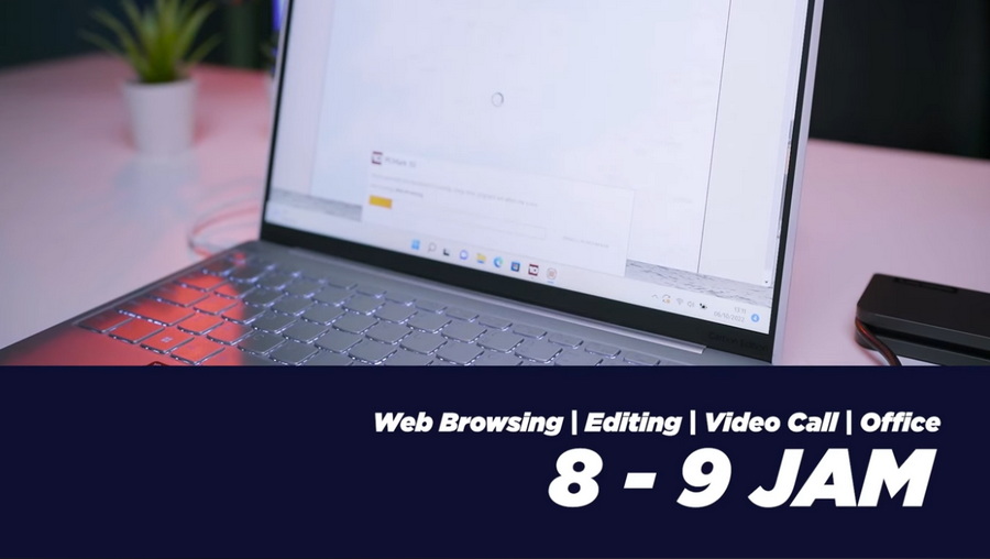 Sementara itu, kami juga menguji daya tahan baterai laptop ini menggunakan PC Mark 10 modern office dengan konfigurasi brightness 50%, Wi-Fi on, serta mode best power efficiency. Laptop ini memiliki daya tahan baterai hanya 8 sampai 9 jam. Waktu yang masih oke lah untuk penggunaan harian standar menurut kami.